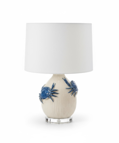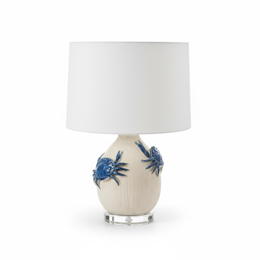 Charming ceramic table lamp featuring sculpted crabs on a textured neutral base, adding a coastal touch to any space. Finished with a clear acrylic base and a clean, modern shade for a fresh, polished look.