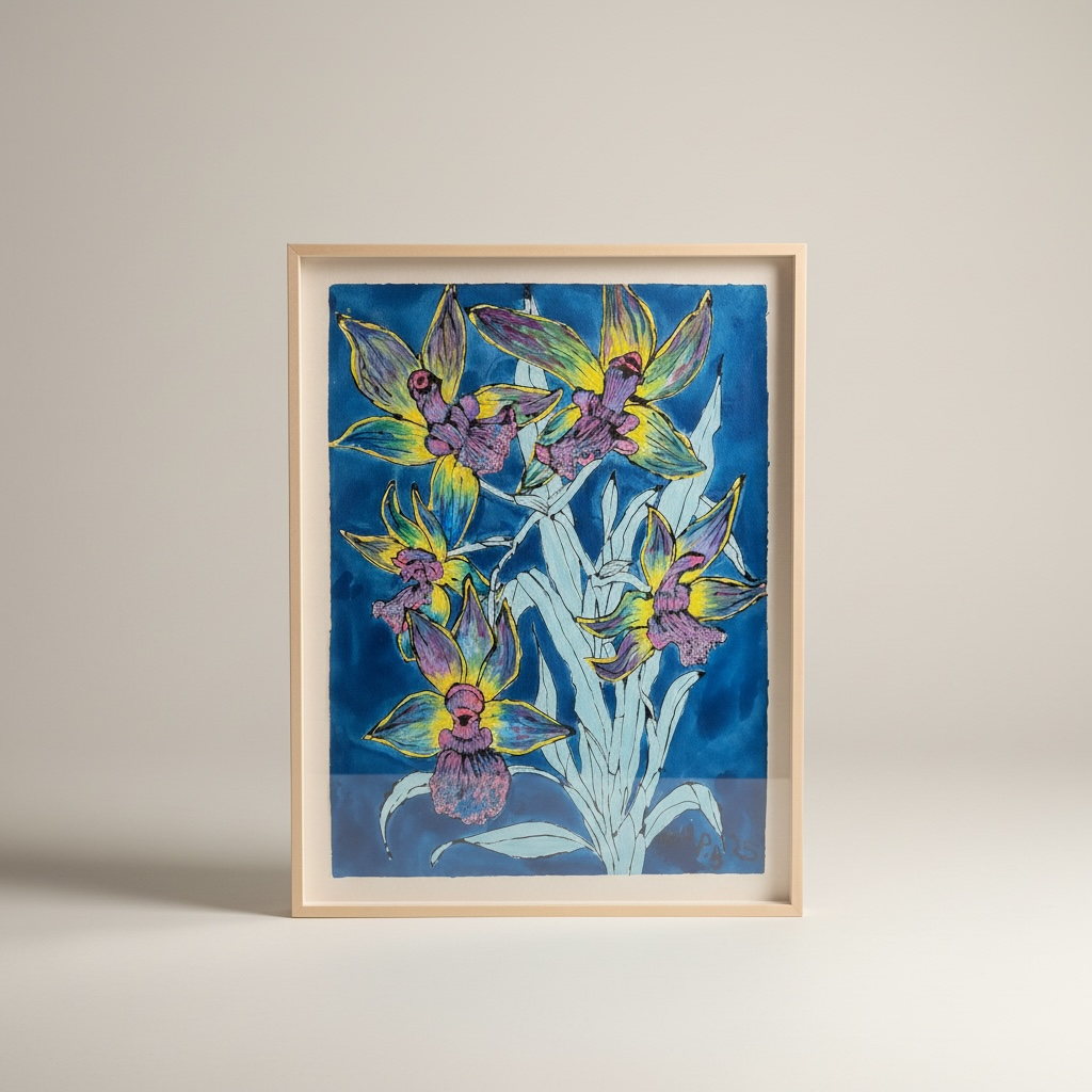 These striking botanical works by Christian Peltenburg-Brechneff depict the dramatic form of the Odonto Brassia ‘Kenneth Bivin’ orchid, rendered in the artist’s expressive and vibrant style. Known for creating immersive relationships with nature through rich color and fluid movement, Brechneff captures the exotic elegance of the orchid with painterly energy and refined detail.