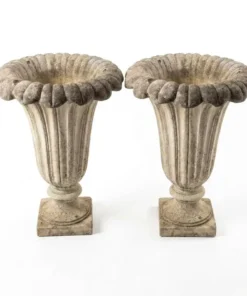 Whether flanking a grand entryway, anchoring a formal loggia, or serving as indoor sculptural accents, these urns possess the scale and weathered elegance required for high-end traditional or coastal landscapes.