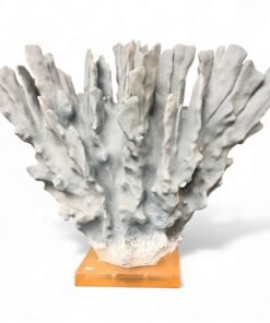 This sculptural faux coral features an organic, branching form inspired by natural reef formations. Finished in a soft blue-gray tone with subtle textural variation, it convincingly captures the look of weathered coral while remaining durable for interior display. Mounted on a simple square base, it makes a striking decorative accent for consoles, shelves, or pedestals, adding an elegant coastal or organic element to any space.
