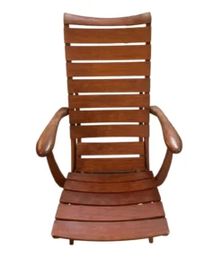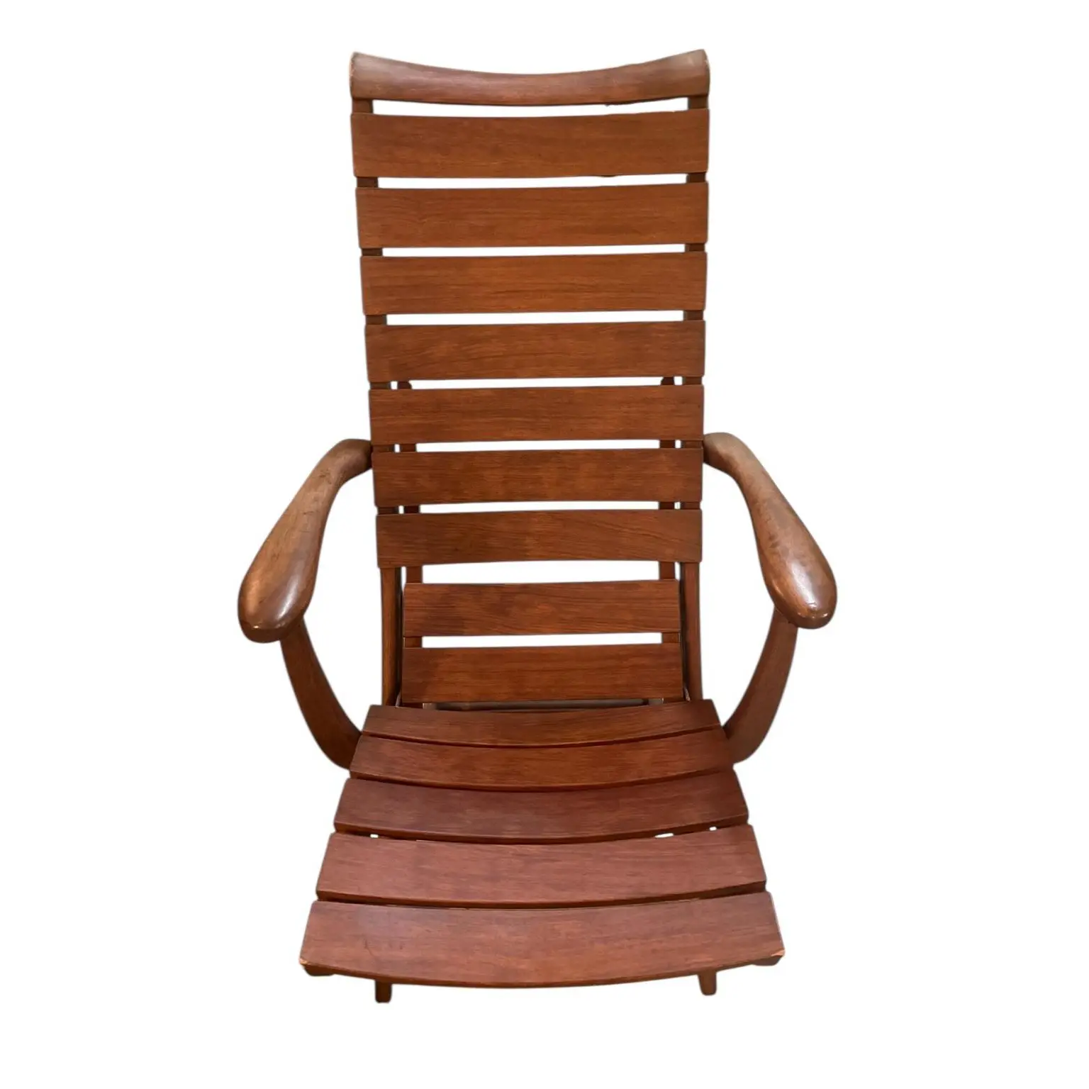 Embrace timeless outdoor style with this authentic vintage reclining lounge chair by Triconfort. Known for their high-quality and durable patio furniture, this chair showcases Triconfort’s classic slatted hardwood design, a look often associated with mid-century or 1980s patio and garden collections, from a Miami Estate.